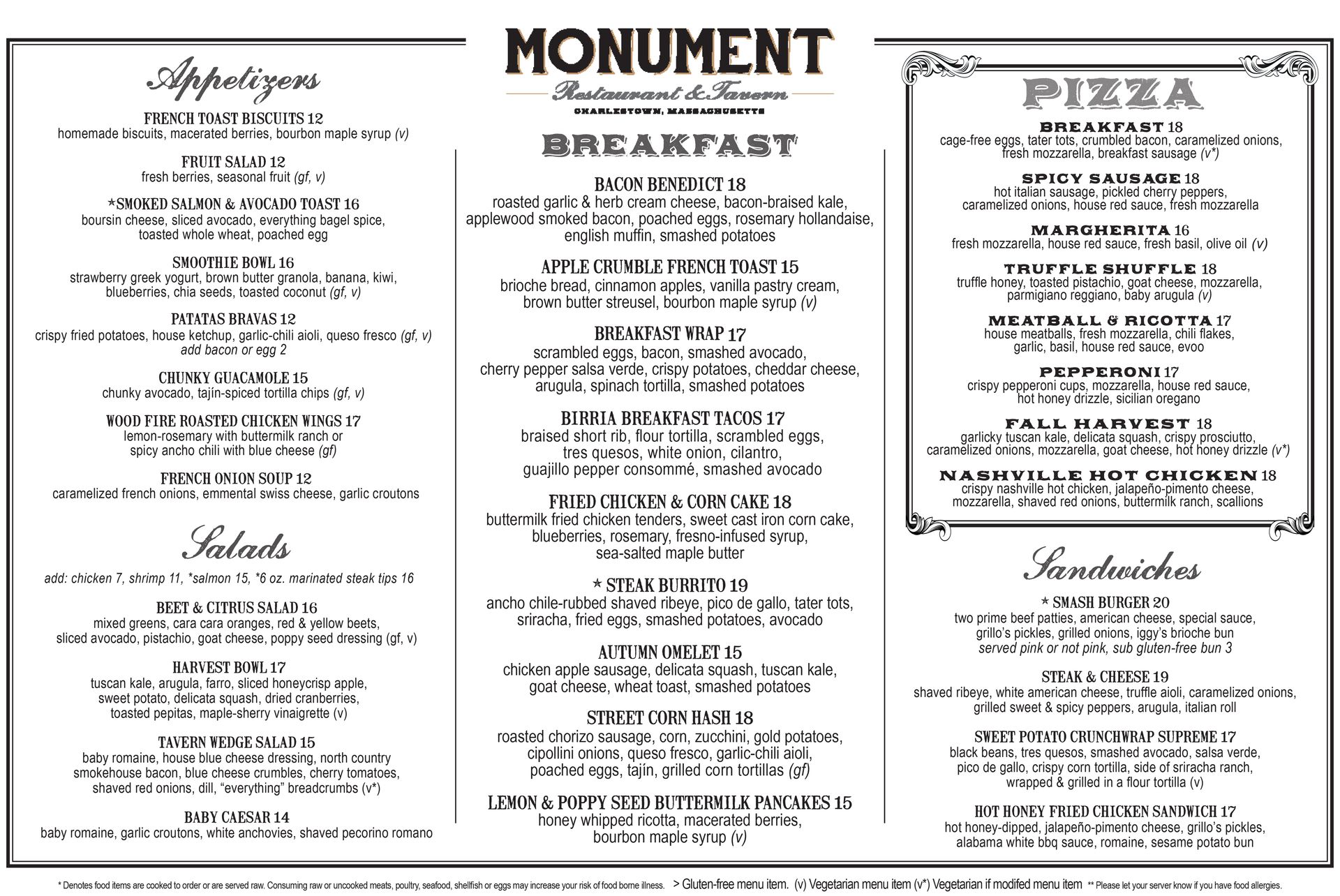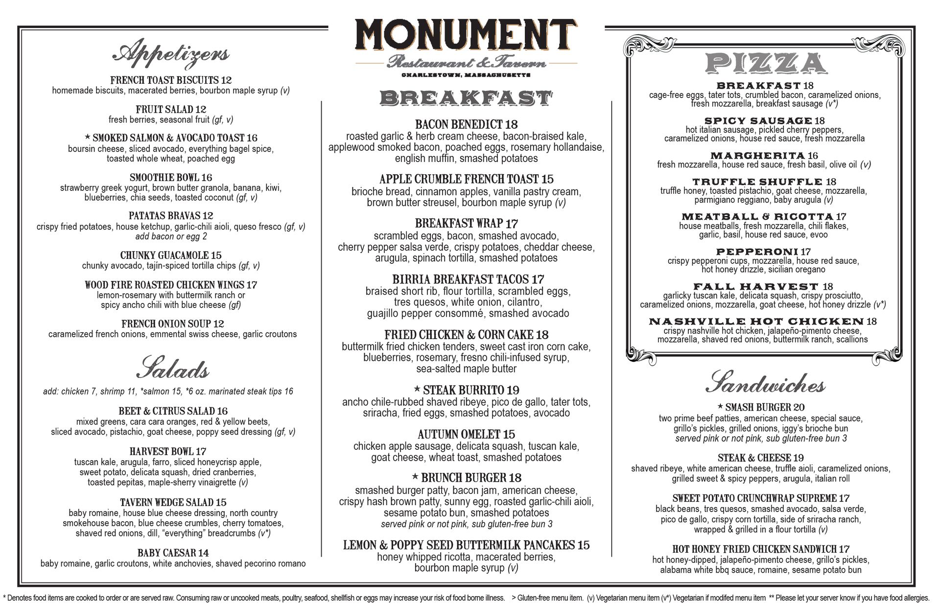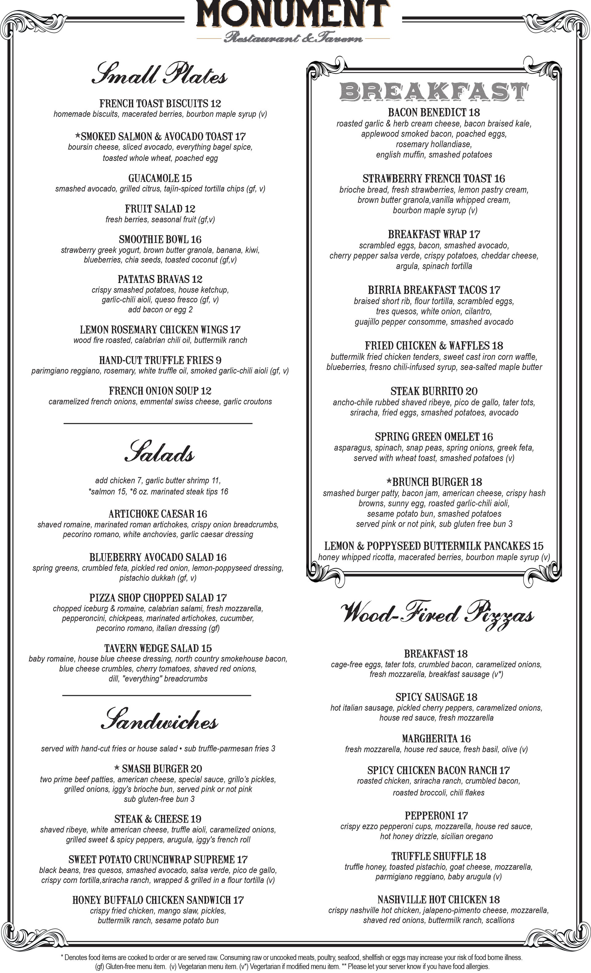 *Consuming raw or undercooked meats, poultry, seafood, shellfish or eggs may increase your risk of food borne illness.
