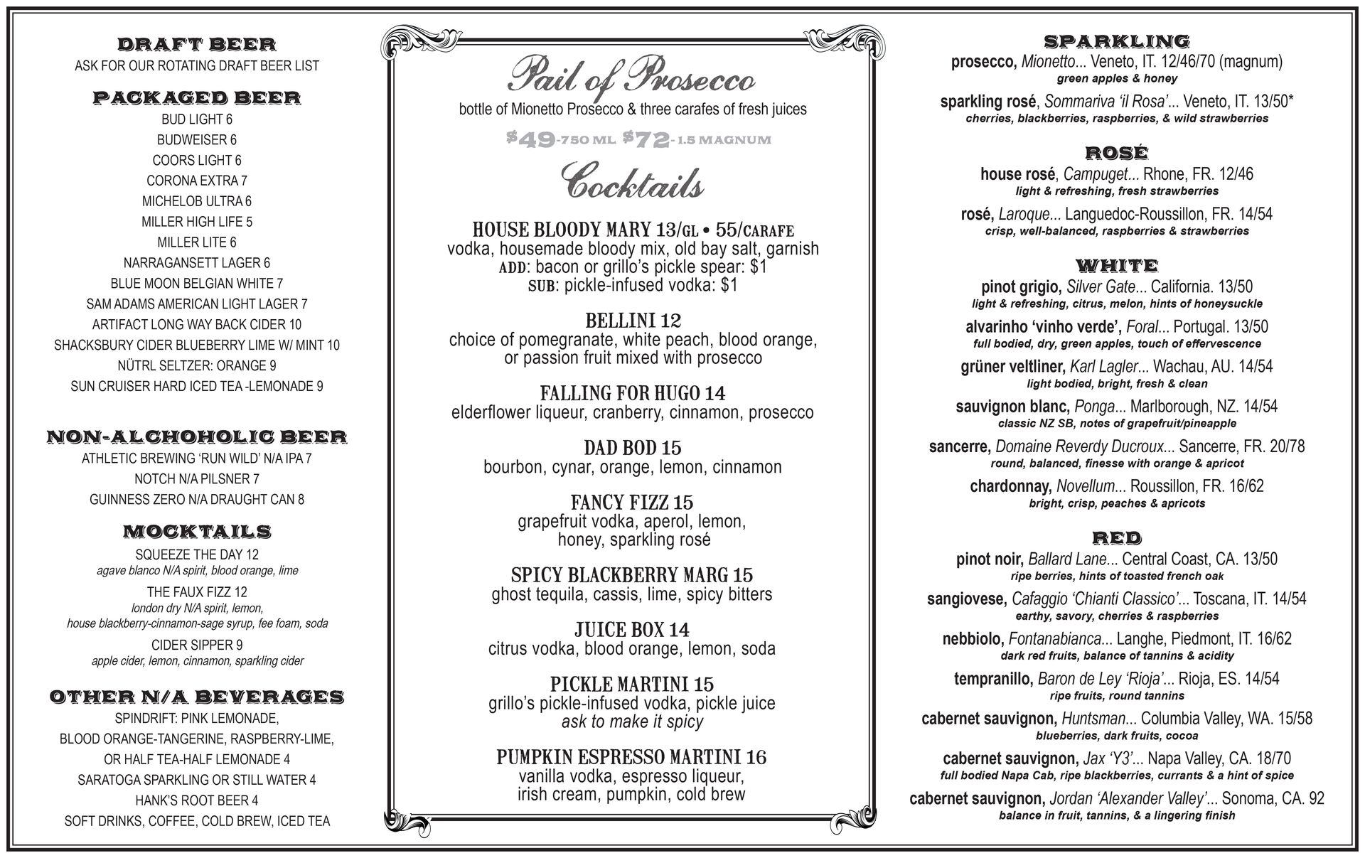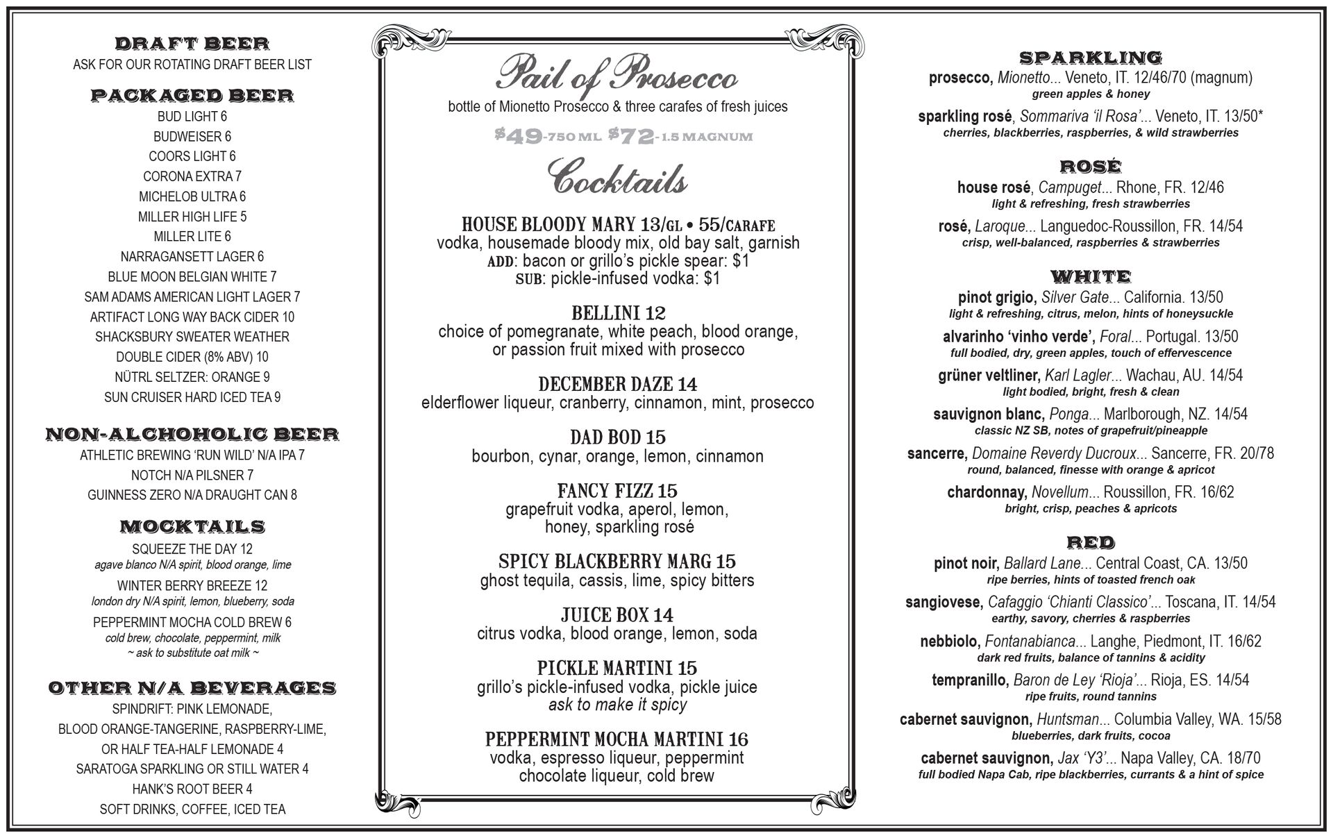 **Please notify your server if you have food allergies. > indicates Gluten Free menu item