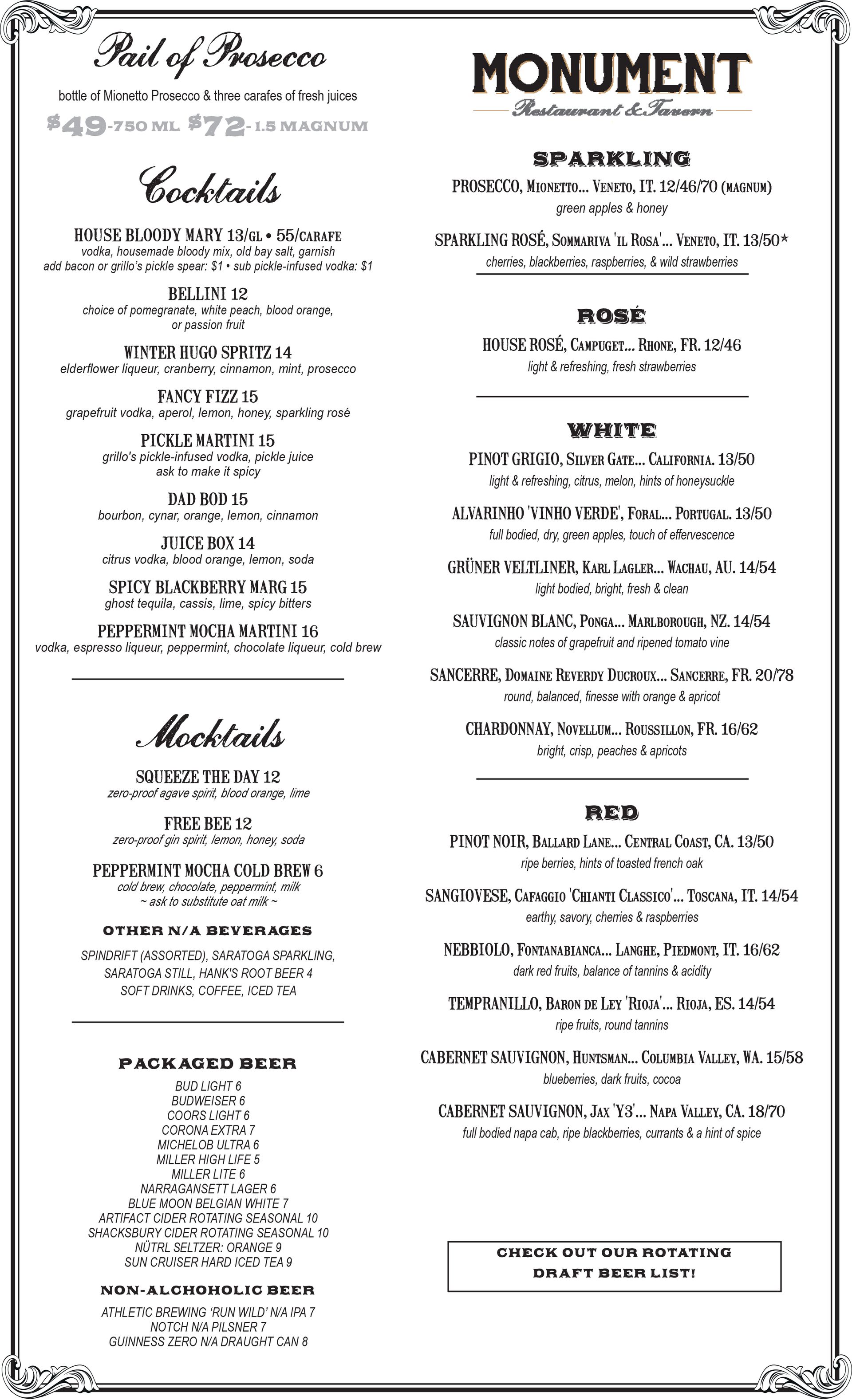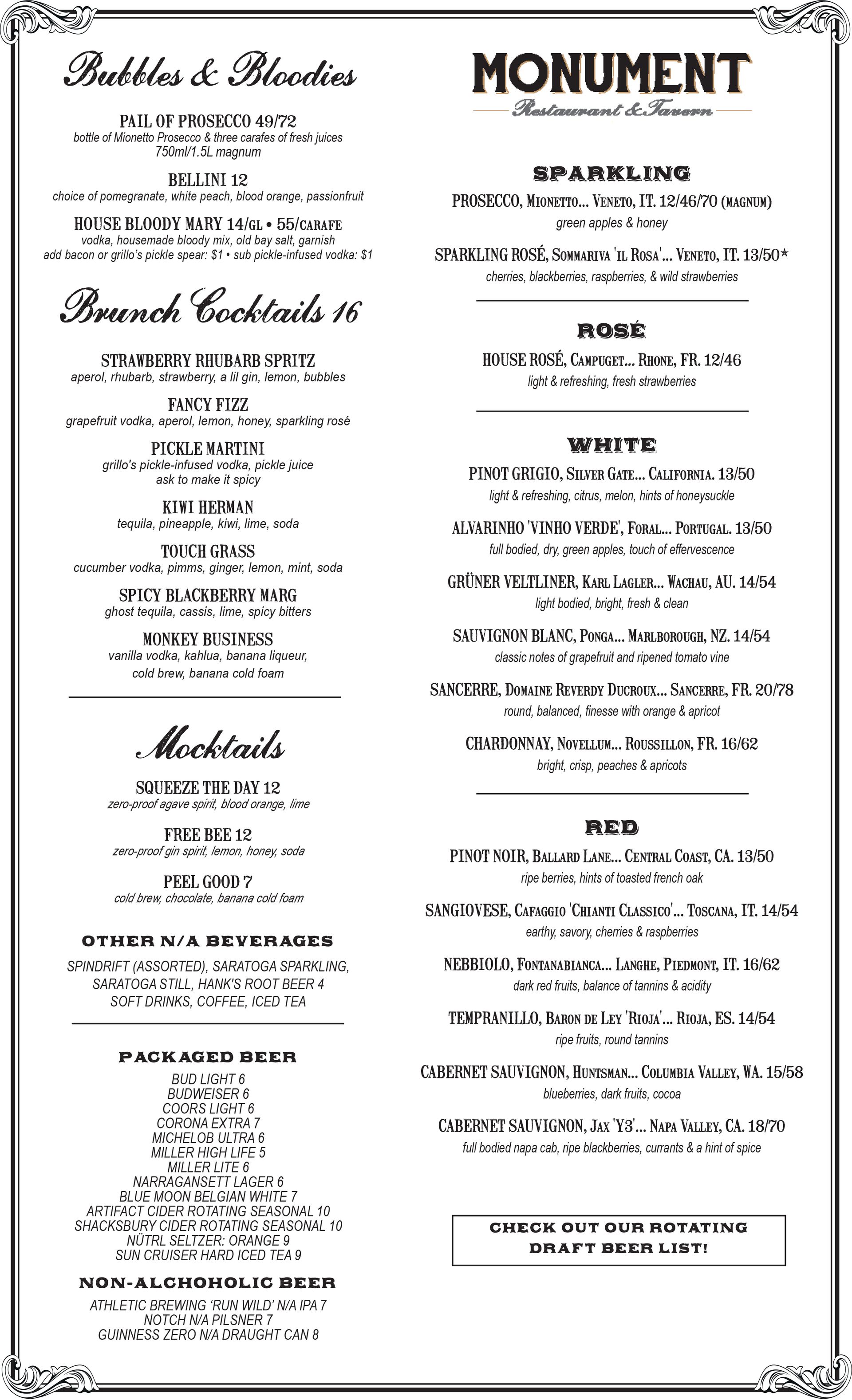 For the best brunch in Charlestown, head out to Monument Restaurant & Tavern on Saturdays & Sundays. From 9 a.m. until 3 p.m., our team serves up classic libations including Bloody Marys & Mimosas as well as a mouthwatering mix of breakfast & lunch fare.