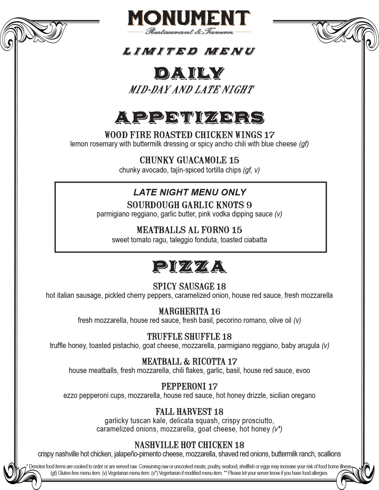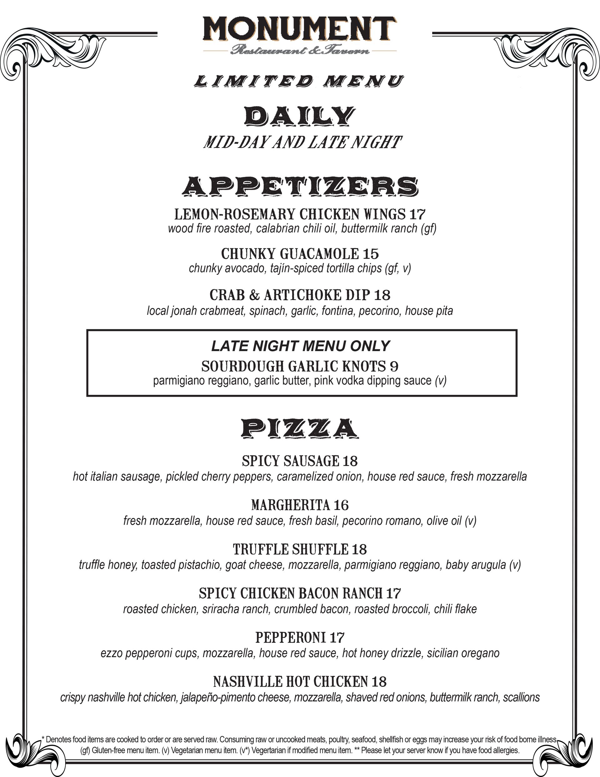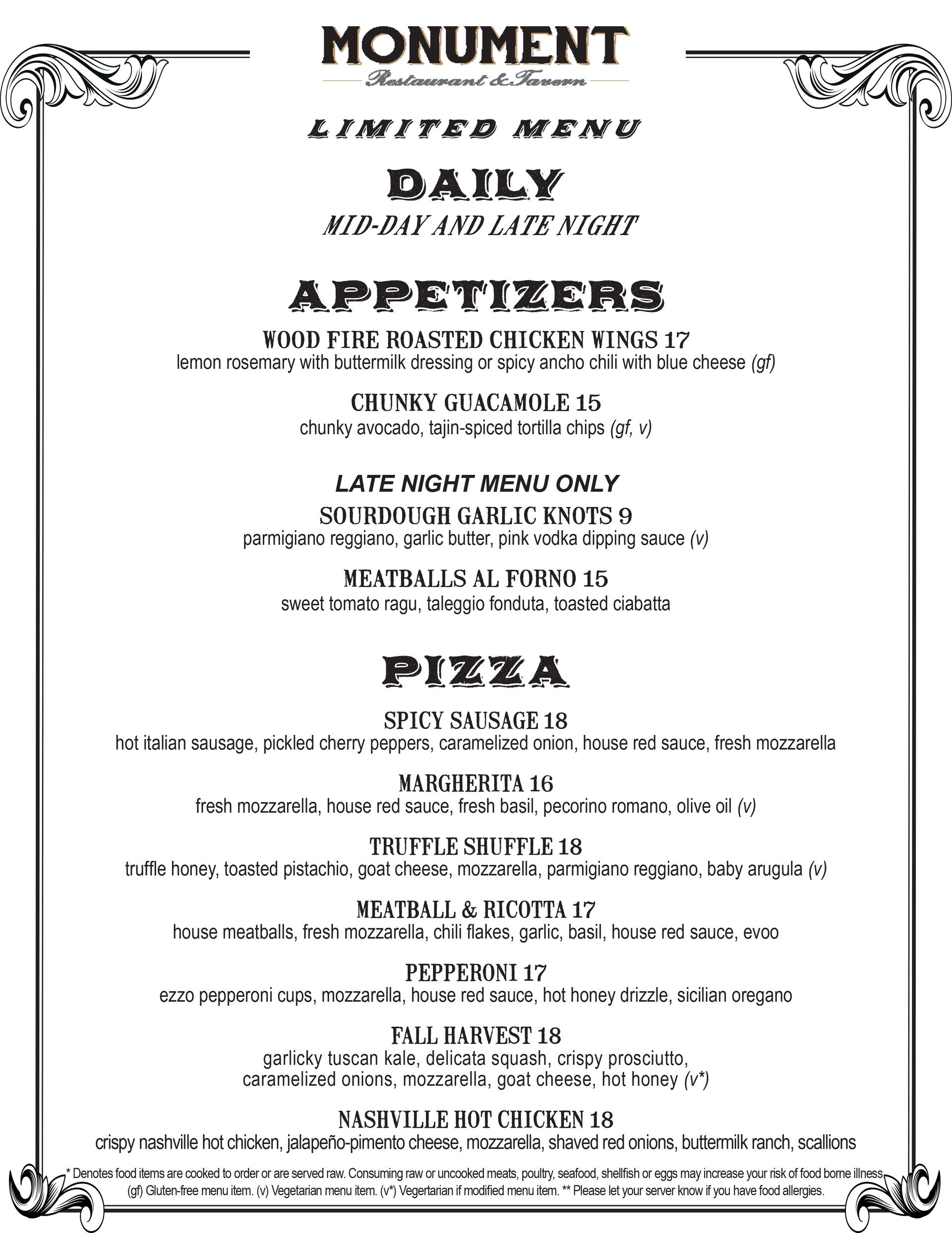 >GLUTEN FREE MENU ITEM • (v) VEGETARIAN MENU ITEM • (v*) VEGETARIAN IF MODIFIED* MENU ITEM